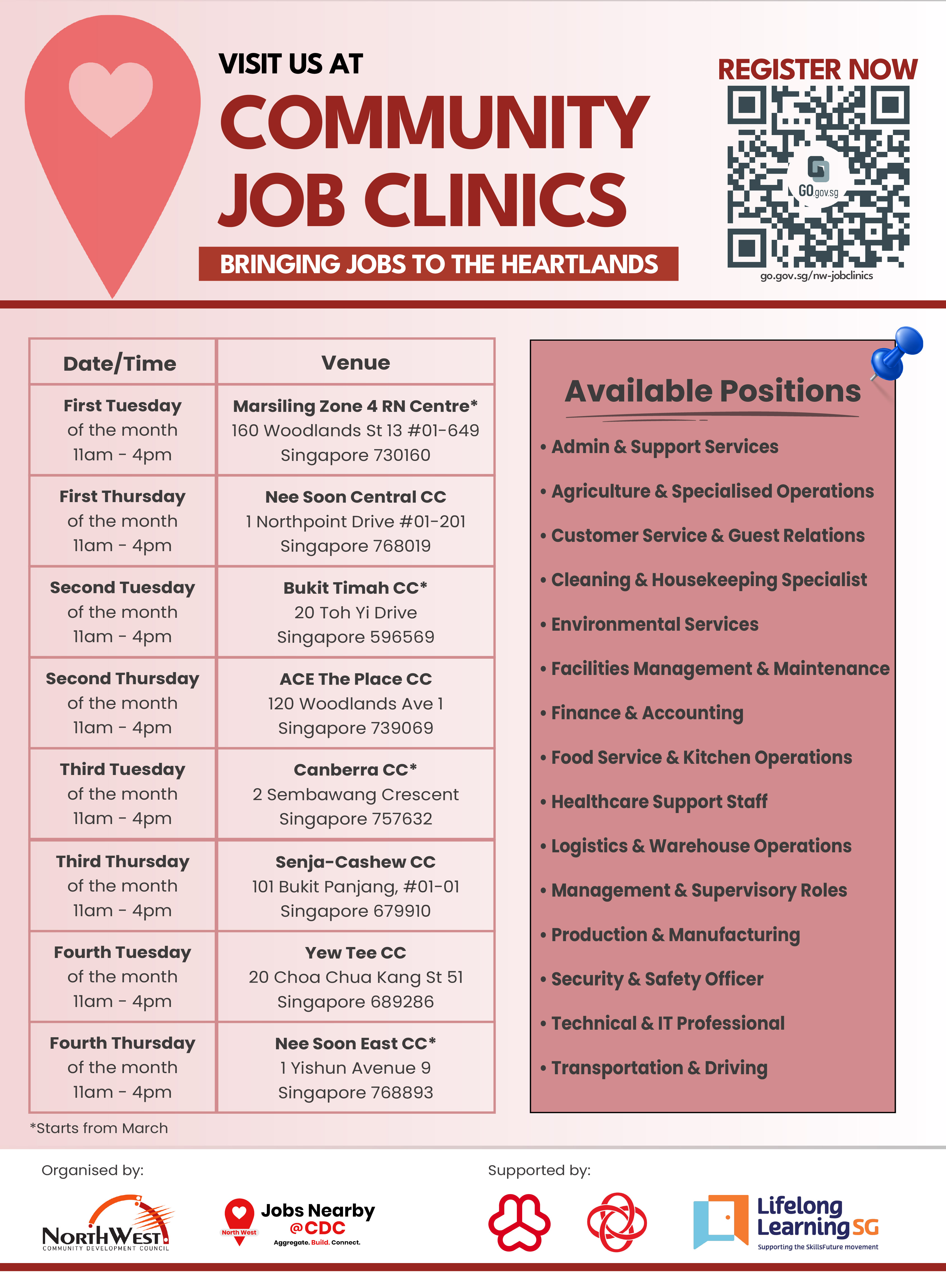 The job clinics are now right within your neighbourhood! Speak to our Job Ambassadors to discover available roles near you, and personalised career guidance between jobseekers and potential employers.