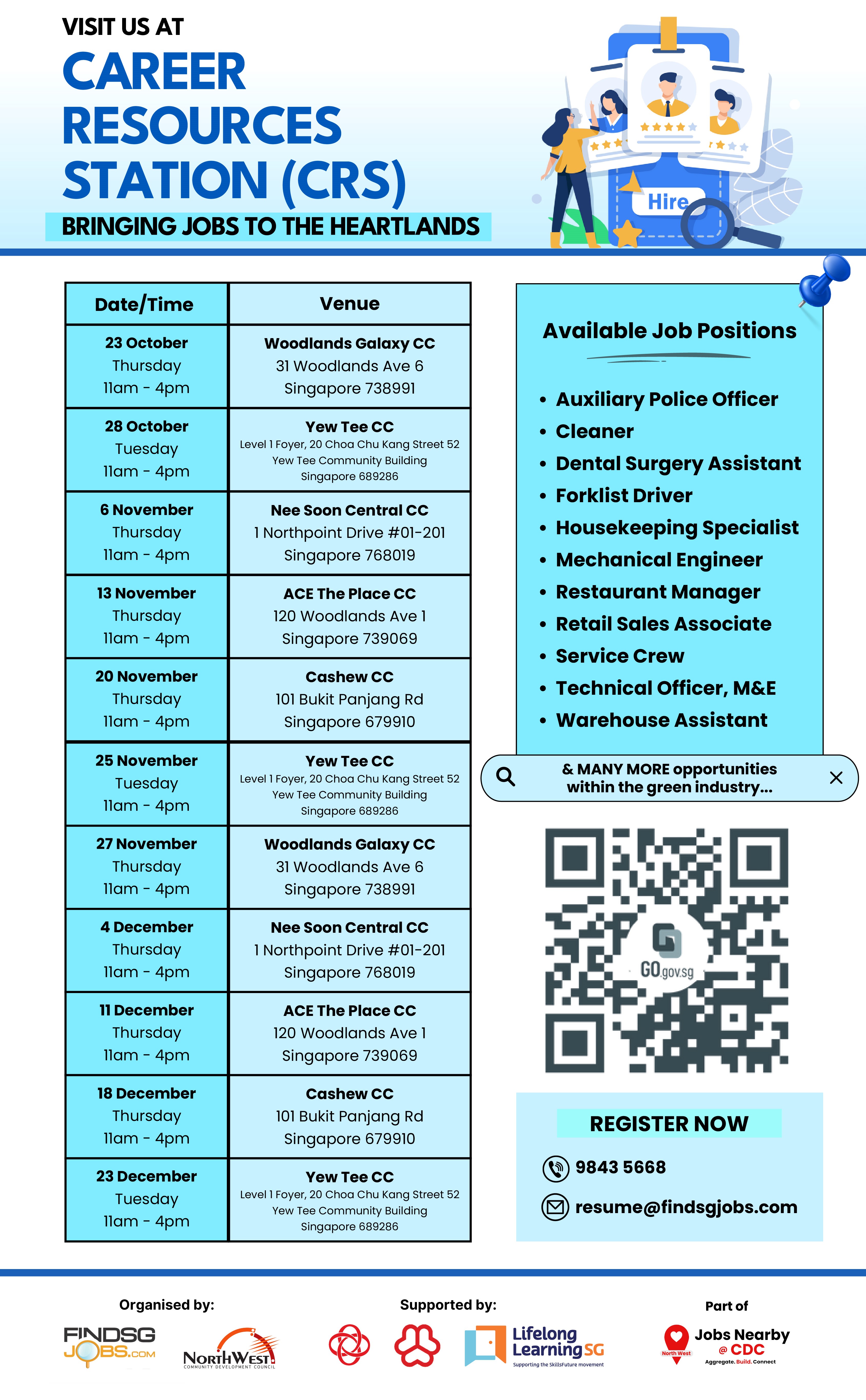 The job clinics are now right within your neighbourhood! Speak to our Job Ambassadors to discover available roles near you, and personalised career guidance between jobseekers and potential employers.